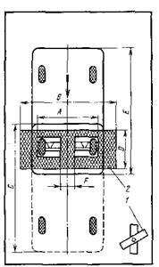 Рис. 6.3. Планировка площадки со стендом для проверки тормозов: / — пульт индикации; 2 — роликовый узел; С—£ — длина     автомобиля;     А — макси­мальная ширина колеи автомобиля