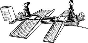 Оптические стенды в последнее время в мировой практике все чаще монтируют на четырехстоечных подъемниках. В СССР на СТОА для этих целей применяют четырехстоечный подъемник СДД-2,5 и оптический прибор ПКО-1 (рис. 4.10). Использова­ние подъемника упрощает процесс диагностирования, делает его более удобным и дает возможность (особенно при наличии домкратов) выполнять необходимые регулировочные работы,
