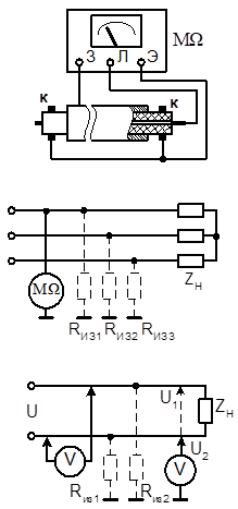 (к – кольца из оголенного медного провода для устранения влияния токов утечек через внешнюю поверхность изоляции)
