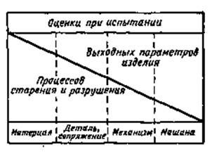 Оценка процессов повреждения или выходных параметров изделия зависит от объекта испытания и поставленных задач. Чем сложнее объект испытания, тем большая доля общего объема испытаний приходится на оценку выходных параметров (рисунок).