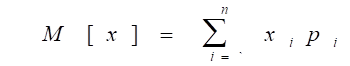 ž Математическое ожидание – среднее значение случайной величины Х, определяется для генеральной совокупности n дискретных случайных величин xi, принимающих то или иное значение с вероятностью рi следующим образом: