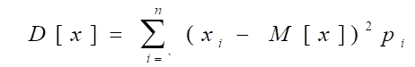 ž Дисперсия – математическое ожидание квадрата отклонения случайной величины от ее математического ожидания. Для генеральной совокупности дискретных случайных величин определяется по формуле: