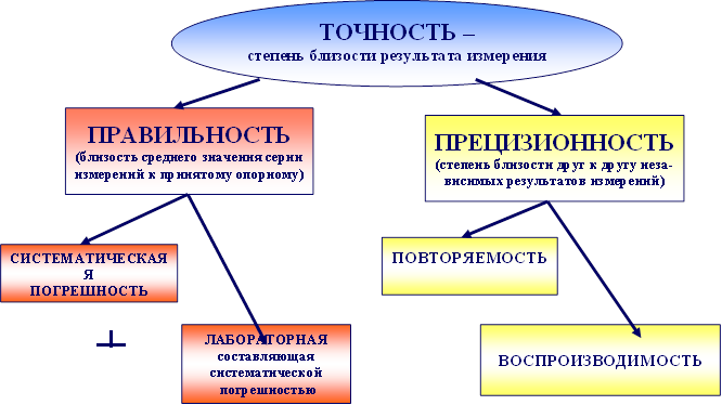 В соответствии с ГОСТ R ISO 5725-1-2002 точность результата измерений это степень его близости к некоторому опорному значению. Причинами расхождения (погрешности) могут быть следующие ошибки: