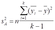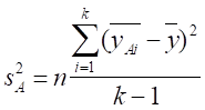 - изменением уровней исследуемого фактора, т.е. дисперсия между выборками sA2 :