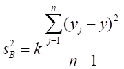 Чтобы оценить фактор случайности, следует определить средневзвешенную дисперсию по столбцам, обусловленную влиянием фактора В и фактора случайности (S2B – S2ош), и вычесть из нее рассеяние в средних по строчкам, связанное с влиянием фактора В и фактора случайности (учитывая, что дисперсия среднего в n раз меньше дисперсии единичного измерения: S2B – S2ош / k). После преобразований получится, что: