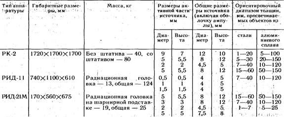 Таблица 2.5. Основные характеристики отечественных гамма-аппаратов для контроля изделий в условиях эксплуатации