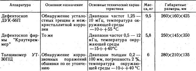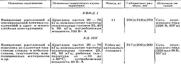 Таблица 2.14. Аппаратура для контроля ультразвуковым велосимметрическим методом в условиях эксплуатации
