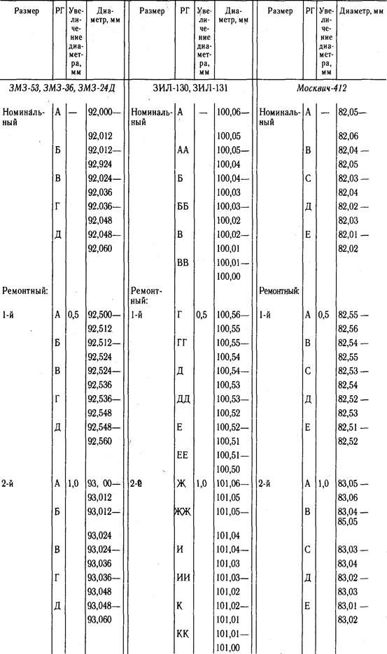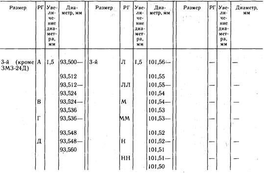 Таблица 4.3. Размеры гильз цилиндров двигателей