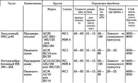 Таблица 4.5. Характеристика инструмента и параметры обработки при плосковершинном хонинговании