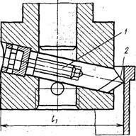 Вылет l1 резца регулируют (рис. 4.4) при помощи винта 1 с лимбом, ввинчиваемого в торец резца 2.