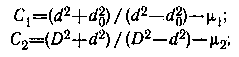 где Δ— максимальный расчетный натяг, мкм; С1, Сг — коэффициенты соответственно охватываемой и охватывающей детали; E1 и E2 — модули упругости материала соответственно охватываемой и охватывающей детали, Па;