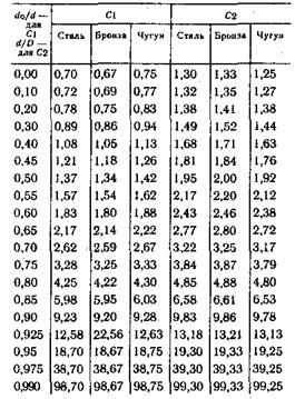 Таблица 5.1. Значения коэффициентов С1 и С2