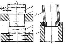 где dо — диаметр отверстии охватываемой детали (дли вала dо = 0), мм; D — наружный диаметр охватывающей детали, мм;μ1 и μ2— коэффициенты Пуассона соответственно для охватываемой и охватывающей детали.