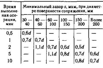 Таблица 5.2. Значения минимальных зазоров при использовании тепловых методов сборки