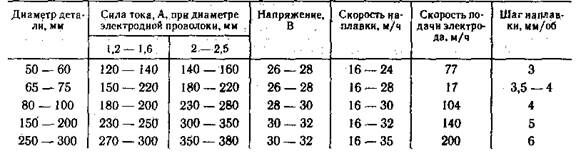 Таблица 7.6. Режимы наплавки цилиндрических деталей под слоем флюса