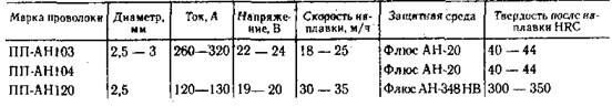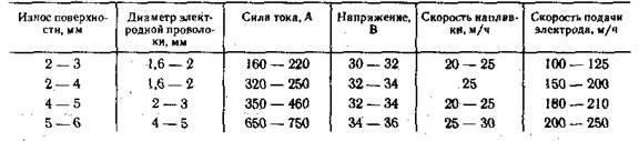 Таблица 7.8. Режимы наплавки порошковой проволокой