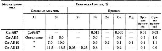 Таблица 7.12. Составы электродных проволок для сварки (наплавки) деталей из алюми­ния и его сплавов