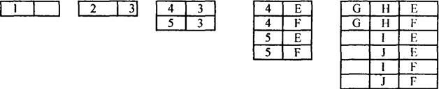 Номера входов записываются слева направо по горизонтали, поскольку условие 1 — это условие "и". В третьей матрице условие 2 заменяется ее входами 4 и 5, а номера входов ставятся сверху вниз, поскольку условие 2 — это условие "или". Отметим также, что каждый из входов 4 и 5 в матрице связан со входом 3, поскольку вход 2 связан со входом 3 условием "и". Этот процесс продолжается, и в пятой матрице заканчивается минимальным числом независимых путей (в данном случае их шесть), по которым может произойти главное событие.