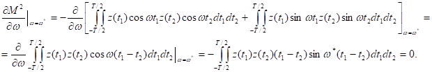 Приведенное уравнение не имеет аналитического решения, но можно показать, что оно имеет множество корней. Воспользуемся линеаризацией этой формулы, предположив, что известно опорное значение ω, близкое к искомому решению ω* = ω + Δω*, причем Δω*Т<< π/2. Тогда, считая, что cos Δω*(t1 – t2) ≈ 1 и sin Δω*(t1 – t2) ≈ Δω*(t1 – t2), получаем