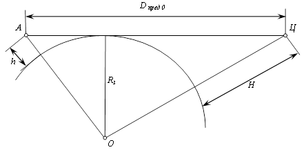 Рис.5.4. Предельная дальность действия РЛС при прямолинейном распространении радиоволн.