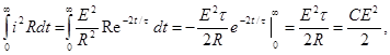 В процессе заряда емкости половина энергии, отдаваемой источником, переходит в энергию, запасаемую емкостью, а вторая половина расходуется в активном сопротивлении, переходя в тепло. Энергия, расходуемая на сопротивлении