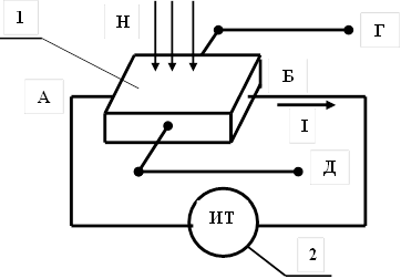 Для бесконтактного измерения силы тока в амперметрах можно использовать эффект Холла. Для реализации этого способа измерения необходим датчик Холла, состоящий из полупроводниковой пластины Рис.3. – 1, источника постоянного тока ИТ.