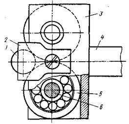 / — шарик; 2 — сепаратор; 3—корпус;. 4 — державка; 5 — подшипник; 6 — ось