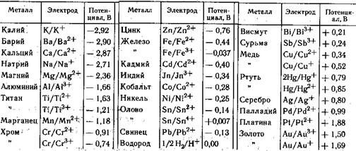 Таблица 10,1. Стандартные электродные потенциалы металлов в водных растворах при 298 °К