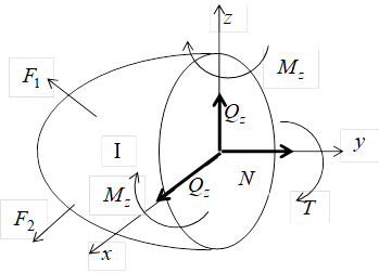 Виды деформационных состояний. В результате приведения внутренних сил к центру тяжести сечения, в общем случае получаем шесть внутренних силовых факторов: продольную силу