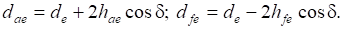 В этом случае диаметр вершин и диаметр впадин зубьев рассчитываются по зависимостям: