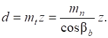 . Торцовый и осевой модули выражаются через нормальный по зависимостям: