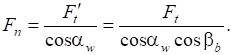 Нормальную силу, действующую в зацеплении, определяют по зависимости: