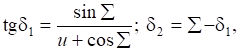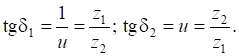 Так как оси колес пересекаются (рис. 58), то начальные поверхности являются конусами, углы которых определяются по зависимостям: