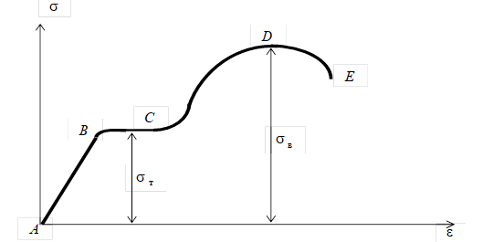 Диаграмма растяжения для пластичных материалов имеет вид, показанный на рис. 6.