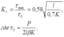 Для равнопрочных соединений (2[τ]βKL=[σ]рA) при условии, что [τ]=0.6[σ]р и β=0,7, а также учитывая, что сt hα0L=1, теоретический коэффициент концентрации напряжений в стальном фланговом шве