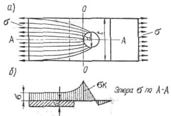 Сглаживание эпюры напряжений в пластической стадии, рассмотренное на конкретном примере, является закономерным процессом, имеющим место во многих элементах конструкций из пластичных сталей (низкоуглеродистые и низколегированные) при одноосных напряженных состояниях (а иногда и многоосных). Однако концентрация напряжений существенно снижает прочность при переменных нагрузках; в случае ограниченной пластичности металла и при статических нагрузках.