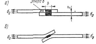 Рис. 5.11 Появление концентрации напряжений в соединениях с шовными швами: а — неравномерное распределение по толщине; 6 — изгиб соединении |