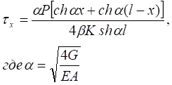 Если А1<А2, то наибольшее значение τХ будет со стороны элемента с меньшим поперечным сечением. При условии, что все деформации упругие, эпюра распределения τХ имеет вид, показанный на Рис. 5.7, в.