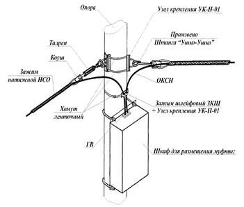 Для подвески кабеля ОКСН должны быть установлены на опорах ВЛ узлы крепления. Предназначенный для монтажа кабель и линейная арматура должны пройти входной контроль качества.