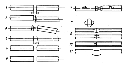 При сварке одномодовых волокон необходимо обеспечить весьма малые значения осевого и углового смещений. Например, осевое смещение свариваемых одномодовых ОВ не должно превышать 0,1 мкм. Жесткий допуск по смещению продольных осей соединяемых одномодовых ОВ обусловлен тем, что силы поверхностного натяжения не могут обеспечить для данного типа волокна с диаметром сердцевины 6…10 мкм точную юстировку. Такие допуски при юстировке одномодовых ОВ не могут быть достигнуты вручную.