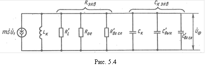 Последующий каскад, являющийся нагрузкой для данного каскада, учтён его активным входным сопротивлением и его входной емкостью. Пересчитывая элементы схемы к контуру (на основе закона сохранении энергии) в соответствии с выражениями (4.3), переходим к схеме рис. 5.4.