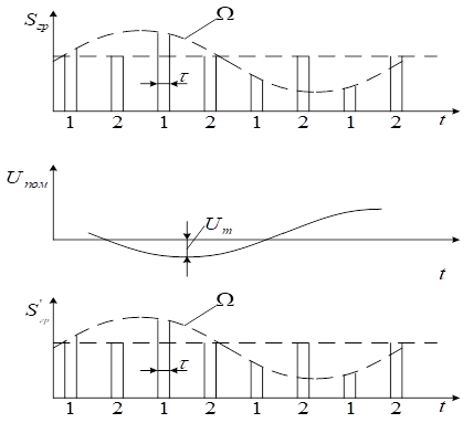, т.е. временной сдвиг импульсов пропорционален значению модулирующей функции