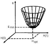 В стационарной среде график зависимости e от коэффициентов H представляет собой чашеобразную поверхность адаптации (рис. 11.1.3). Градиент поверхности: