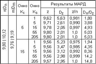 | Основной входной массив N Дополнительный входной массив М Массив Z, счет Dm по несглаженному М Массив Z, счет Dm по сглаженному М Массив N, сглаженный весовым окном | 9.96 9,89 9,87 9,84 11,5 | 9.97 9,49 5,47 4,76 17,9 | 50,1 50,2 49,7 49,9 48,5 | 52,0 47,4 22,3 18,6 29,2 |