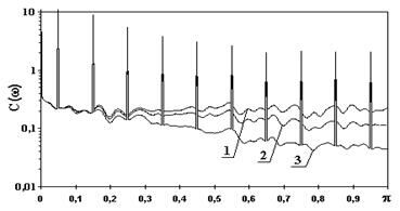 Модуль спектра основного полезного сигнала (в данном случае чистого меандра) представляет собой последовательность отдельных частотных гармоник по всему диапазону спектра. В спектре рандомизированного меандра эти частотные гармоники суммируются со спектром шума, статистически равномерно распределенным по всему частотному диапазону (спектр шума на рисунке для наглядности сглажен). СРД осуществляет подавление шумовых составляющих сигнала, практически не затрагивая частотных гармоник меандра и не изменяя их по амплитуде. Последнее можно видеть на рис. 11.3.11, где представлен отрезок спектра сигналов в высокочастотной части главного диапазона в области одной гармоники меандра (частотные составляющие шума не сглажены). При 3-х цикловом СРД высокочастотные составляющие шумов подавляются практически на порядок.
