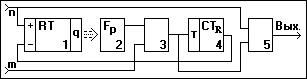 Рис. 11.3.1. Базовая функциональная схема СГПИ. 1- реверсивный счетчик импульсов, 2- блок формирования сигнала выборки импульсов, 3- схема выборки импульсов, 4- счетчик-делитель частоты на R, 5- блок суммирования потоков импульсов. |