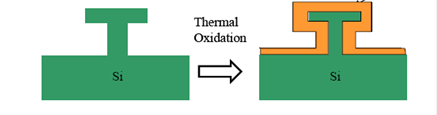 При термическом оксидировании кислород взаимодействует с кремнием, диффундируя через слой SiO2, поскольку коэффициент диффузии O2 в SiO2 во много раз больше, чем аналогичный коэффициент диффузии Si в SiO2.