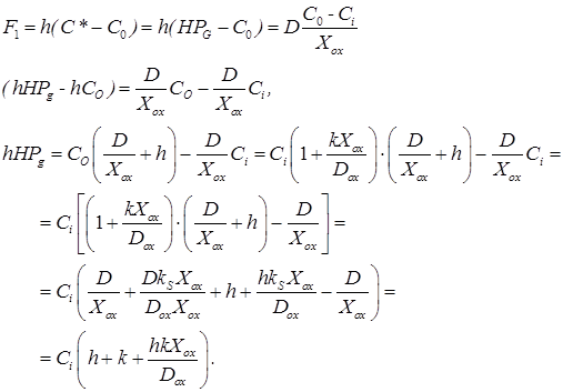 Таким образом, поток окислителя к поверхности кремния можно записать в виде: