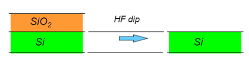 В то же время, существуют травители, например HF, которые селективно стравливают SiO2, не воздействуя при этом на кремний. Аналогичный результат можно получить, применяя плазменное травление
