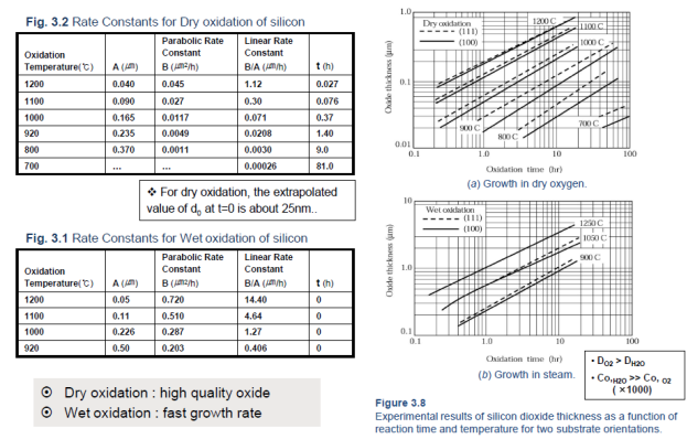 Если термическое окисление проводить в атмосфере водяного пара, то аналогичный слой при той же температуре можно получить примерно за 1час. Более высокая скорость объясняется меньшим эффективным диаметром молекул Н2О по сравнению с О2 и меньшей энергией активации диффузии молекул окислителя через растущий слой оксида.